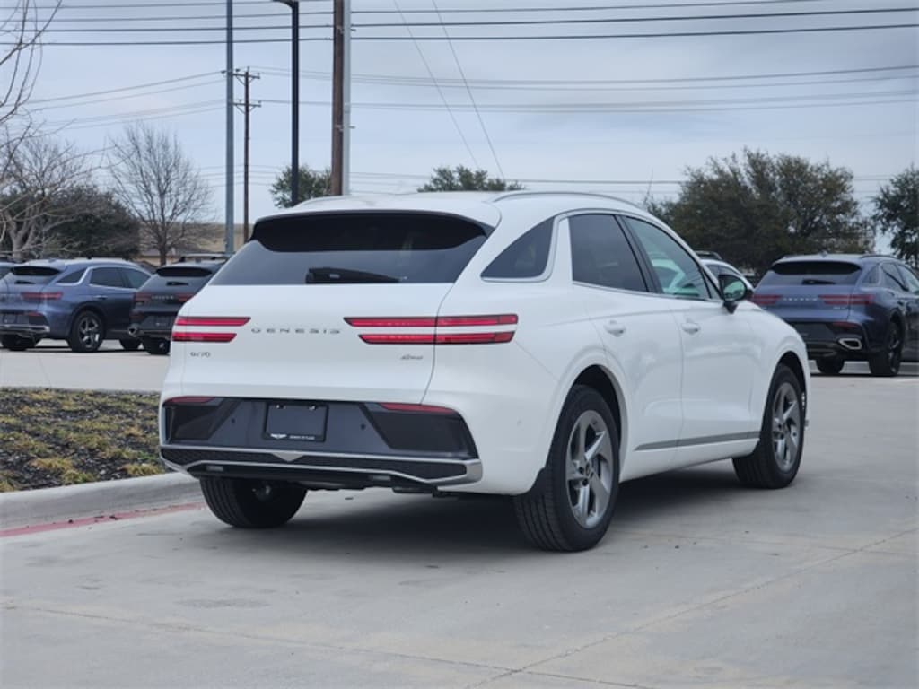 Alta White 2026 Genesis GV70 2.5T Advanced 4D Sport Utility 2.5T Advanced AWD 8-Speed Automatic with SHIFTRONIC 2.5L DOHC Option Group 01, 16 Speakers, 4-Wheel Disc Brakes, ABS brakes, Air Conditioning, Alloy wheels, AM/FM radio: SiriusXM, Android Auto & Apple CarPlay, Anti-whiplash front head restraints, Auto High-beam Headlights, Auto-dimming door mirrors, Auto-dimming Rear-View mirror, Automatic temperature control, Brake assist, Bumpers: body-color, Cargo Cover, Cargo Net, Cargo Tray, Delay-off headlights, Driver door bin, Driver vanity mirror, Dual front impact airbags, Dual front side impact airbags, Electronic Stability Control, Emergency communication system: Genesis Connected Services, Exterior Parking Camera Rear, First Aid Kit, Four wheel independent suspension, Front and Rear Mudguards, Front anti-roll bar, Front Bucket Seats, Front Center Armrest w/Storage, Front dual zone A/C, Front reading lights, Fully automatic headlights, Garage door transmitter: HomeLink, Heated and Ventilated Front Bucket Seats, Heated door mirrors, Heated front seats, Heated steering wheel, Illuminated entry, Knee airbag, Leather Seating Surfaces, Leather steering wheel, Low tire pressure warning, Memory seat, Navigation System, Occupant sensing airbag, Outside temperature display, Overhead airbag, Overhead console, Panic alarm, Passenger door bin, Passenger vanity mirror, Power door mirrors, Power driver seat, Power Liftgate, Power moonroof, Power passenger seat, Power steering, Power windows, Radio: 14.5" Navigation System with AM/FM/HD, Rain sensing wipers, Rear anti-roll bar, Rear reading lights, Rear seat center armrest, Rear window defroster, Rear window wiper, Remote keyless entry, Roadside Assistance Kit, Security system, Speed control, Speed-sensing steering, Speed-Sensitive Wipers, Split folding rear seat, Spoiler, Steering wheel memory, Steering wheel mounted audio controls, Tachometer, Telescoping steering wheel, Tilt steering wheel, Traction control, Trip computer, Turn signal indicator mirrors, Variably intermittent wipers, Ventilated front seats, and Wheels: 19" Light Hyper Silver Alloy.
