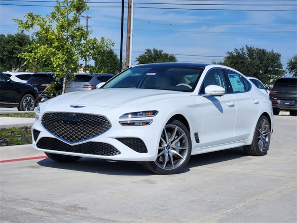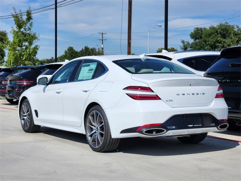 $1,000 off MSRP! Alta White 2026 Genesis G70 2.5T 4D Sedan 2.5T RWD 8-Speed Automatic I4 15 Speakers, 4-Wheel Disc Brakes, ABS brakes, Air Conditioning, Alloy wheels, AM/FM radio: SiriusXM, Android Auto & Apple CarPlay, Anti-whiplash front head restraints, Auto High-beam Headlights, Auto-dimming door mirrors, Auto-dimming Rear-View mirror, Automatic temperature control, Brake assist, Bumpers: body-color, Delay-off headlights, Driver door bin, Driver vanity mirror, Dual front impact airbags, Dual front side impact airbags, Electronic Stability Control, Emergency communication system: Genesis Connected Services, Exterior Parking Camera Rear, Four wheel independent suspension, Front anti-roll bar, Front Bucket Seats, Front Center Armrest, Front dual zone A/C, Front reading lights, Fully automatic headlights, Garage door transmitter: HomeLink, Heated door mirrors, Heated front seats, Heated steering wheel, Htd & Ventilated Multi-Adjustable Fr Bucket Seats, Illuminated entry, Knee airbag, Leather Seating Surfaces, Low tire pressure warning, Memory seat, Navigation System, Occupant sensing airbag, Outside temperature display, Overhead airbag, Overhead console, Panic alarm, Passenger door bin, Passenger vanity mirror, Power door mirrors, Power driver seat, Power moonroof, Power passenger seat, Power steering, Power windows, Radio: AM/FM/SiriusXM/HD Lexicon Prem Audio System, Rain sensing wipers, Rear anti-roll bar, Rear reading lights, Rear seat center armrest, Rear side impact airbag, Rear window defroster, Remote keyless entry, Security system, Speed control, Speed-Sensitive Wipers, Split folding rear seat, Steering wheel memory, Steering wheel mounted audio controls, Tachometer, Telescoping steering wheel, Traction control, Trip computer, Turn signal indicator mirrors, Variably intermittent wipers, Ventilated front seats, and Wheels: 19" x 8.0J Fr & 19" x 8.5J Rr Alloy.