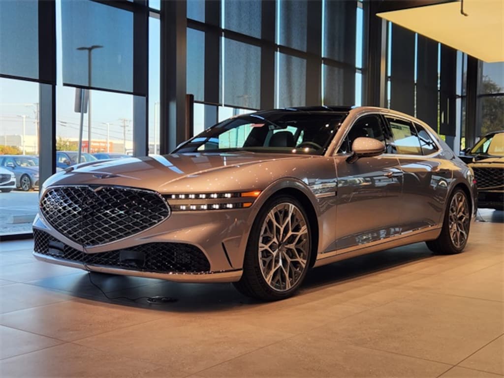 Savile Silver 2026 Genesis G90 3.5T e-SC 4D Sedan 3.5T e-SC AWD 8-Speed Automatic 3.5L V6 DGI Supercharged DOHC 24V LEV3-ULEV70 409hp 4-Wheel Disc Brakes, ABS brakes, Adaptive suspension, Air Conditioning, Alloy wheels, AM/FM radio: SiriusXM, Anti-whiplash front head restraints, Auto High-beam Headlights, Auto tilt-away steering wheel, Auto-dimming door mirrors, Auto-dimming Rear-View mirror, Auto-leveling suspension, Automatic temperature control, Brake assist, Bumpers: body-color, Compass, Delay-off headlights, Driver door bin, Driver vanity mirror, Dual front impact airbags, Dual front side impact airbags, Electronic Stability Control, Emergency communication system: Genesis Connected Services, Exterior Parking Camera Rear, Four wheel independent suspension, Front anti-roll bar, Front Bucket Seats, Front Center Armrest, Front dual zone A/C, Front reading lights, Fully automatic headlights, Garage door transmitter: HomeLink, Genuine wood console insert, Heads-Up Display, Heated & Ventilated Front Bucket Seats, Heated front seats, Heated rear seats, Heated steering wheel, Illuminated entry, Knee airbag, Low tire pressure warning, Memory seat, Nappa Leather Seating Surfaces, Navigation System, Occupant sensing airbag, Outside temperature display, Overhead airbag, Overhead console, Panic alarm, Passenger door bin, Passenger vanity mirror, Power adjustable rear head restraints, Power door mirrors, Power driver seat, Power moonroof, Power passenger seat, Power steering, Power windows, Radio data system, Radio: AM/FM Bang & Olufsen 3D Prem Audio System, Rain sensing wipers, Rear air conditioning, Rear anti-roll bar, Rear reading lights, Rear seat center armrest, Rear side impact airbag, Rear Window Blind, Rear window defroster, Remote keyless entry, Security system, Speed control, Speed-sensing steering, Speed-Sensitive Wipers, Steering wheel memory, Steering wheel mounted audio controls, Tachometer, Telescoping steering wheel, Tilt steering wheel, Traction control, Trip computer, Variably intermittent wipers, Ventilated front seats, Ventilated rear seats, and Wheels: 21" x 8.5J Fr & 21" x 9.5J Rr Alloy.