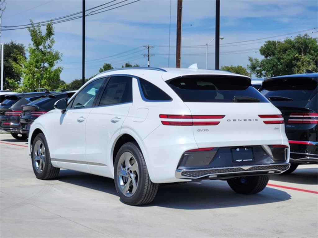 $1,000 off MSRP! Uyuni White 2026 Genesis GV70 2.5T 4D Sport Utility 2.5T AWD 8-Speed Automatic with SHIFTRONIC 2.5L DOHC 4-Wheel Disc Brakes, 9 Speakers, ABS brakes, Air Conditioning, Alloy wheels, AM/FM radio: SiriusXM, Android Auto & Apple CarPlay, Anti-whiplash front head restraints, Auto High-beam Headlights, Auto-dimming Rear-View mirror, Automatic temperature control, Brake assist, Bumpers: body-color, Delay-off headlights, Driver door bin, Driver vanity mirror, Dual front impact airbags, Dual front side impact airbags, Electronic Stability Control, Emergency communication system: Genesis Connected Services, Exterior Parking Camera Rear, Four wheel independent suspension, Front anti-roll bar, Front Bucket Seats, Front Center Armrest w/Storage, Front dual zone A/C, Front reading lights, Fully automatic headlights, Garage door transmitter: HomeLink, Heated door mirrors, Heated Front Bucket Seats, Heated front seats, Illuminated entry, Knee airbag, Leather steering wheel, Leatherette Seating Surfaces, Low tire pressure warning, Navigation System, Occupant sensing airbag, Outside temperature display, Overhead airbag, Overhead console, Panic alarm, Passenger door bin, Passenger vanity mirror, Power door mirrors, Power driver seat, Power Liftgate, Power passenger seat, Power steering, Power windows, Radio: 14.5" Navigation System w/AM/FM/HD Radio, Rain sensing wipers, Rear anti-roll bar, Rear reading lights, Rear seat center armrest, Rear window defroster, Rear window wiper, Remote keyless entry, Security system, Speed control, Speed-sensing steering, Speed-Sensitive Wipers, Split folding rear seat, Spoiler, Steering wheel mounted audio controls, Tachometer, Telescoping steering wheel, Traction control, Trip computer, Turn signal indicator mirrors, Variably intermittent wipers, and Wheels: 19" Light Hyper Silver Alloy.