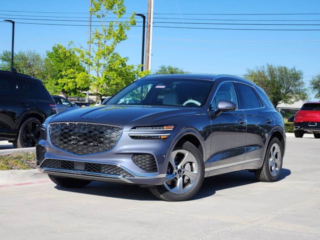 Blue 2026 Genesis GV70 2.5T Advanced 4D Sport Utility 2.5T Advanced AWD 8-Speed Automatic with SHIFTRONIC 2.5L DOHC Option Group 01, 16 Speakers, 4-Wheel Disc Brakes, ABS brakes, Air Conditioning, All Season Fitted Liners, Alloy wheels, AM/FM radio: SiriusXM, Android Auto & Apple CarPlay, Anti-whiplash front head restraints, Auto High-beam Headlights, Auto-dimming door mirrors, Auto-dimming Rear-View mirror, Automatic temperature control, Brake assist, Bumpers: body-color, Cargo Block, Cargo Cover, Cargo Net, Cargo Tray, Delay-off headlights, Driver door bin, Driver vanity mirror, Dual front impact airbags, Dual front side impact airbags, Electronic Stability Control, Emergency communication system: Genesis Connected Services, Exterior Parking Camera Rear, First Aid Kit, Four wheel independent suspension, Front anti-roll bar, Front Bucket Seats, Front Center Armrest w/Storage, Front dual zone A/C, Front reading lights, Fully automatic headlights, Garage door transmitter: HomeLink, Heated and Ventilated Front Bucket Seats, Heated door mirrors, Heated front seats, Heated steering wheel, Illuminated entry, Knee airbag, Leather Seating Surfaces, Leather steering wheel, Low tire pressure warning, Memory seat, Navigation System, Occupant sensing airbag, Outside temperature display, Overhead airbag, Overhead console, Panic alarm, Passenger door bin, Passenger vanity mirror, Power door mirrors, Power driver seat, Power Liftgate, Power moonroof, Power passenger seat, Power steering, Power windows, Radio: 14.5" Navigation System with AM/FM/HD, Rain sensing wipers, Rear anti-roll bar, Rear reading lights, Rear seat center armrest, Rear window defroster, Rear window wiper, Remote keyless entry, Security system, Speed control, Speed-sensing steering, Speed-Sensitive Wipers, Split folding rear seat, Spoiler, Steering wheel memory, Steering wheel mounted audio controls, Tachometer, Telescoping steering wheel, Tilt steering wheel, Traction control, Trip computer, Turn signal indicator mirrors, Variably intermittent wipers, Ventilated front seats, and Wheels: 19" Light Hyper Silver Alloy.