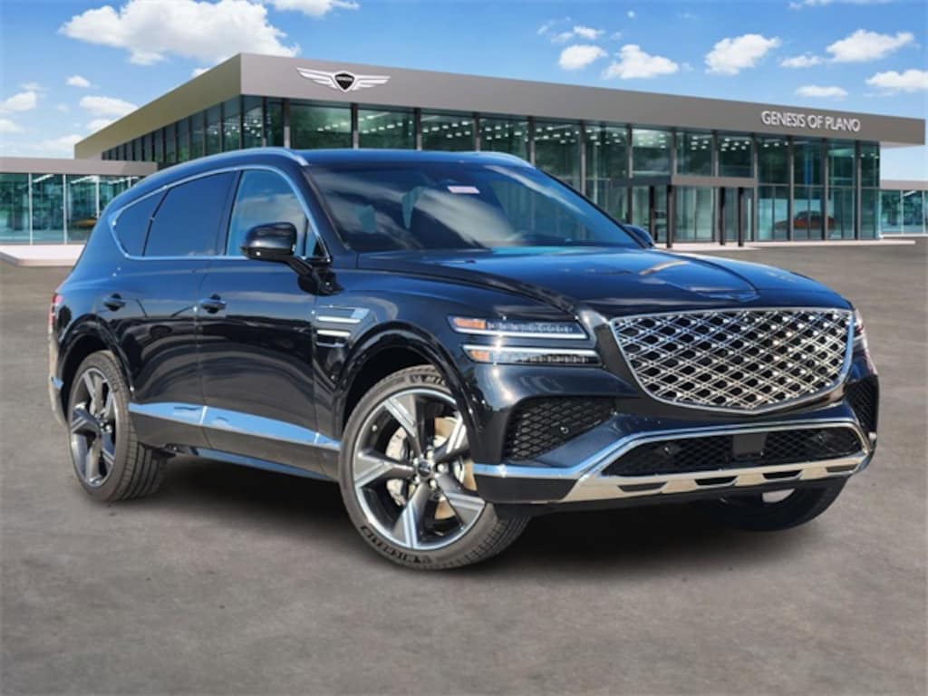 Vik Black 2026 Genesis GV80 3.5T Prestige 4D Sport Utility 3.5T Prestige AWD 8-Speed Automatic 3.5L DOHC Option Group 01, 18 Speakers, 3rd row seats: split-bench, 4-Wheel Disc Brakes, ABS brakes, Adaptive suspension, Air Conditioning, Alloy wheels, AM/FM radio: SiriusXM, Anti-whiplash front head restraints, Auto High-beam Headlights, Auto tilt-away steering wheel, Auto-dimming door mirrors, Auto-dimming Rear-View mirror, Automatic temperature control, Brake assist, Bumpers: body-color, Cargo Blocks, Compass, Delay-off headlights, Driver door bin, Driver vanity mirror, Dual front impact airbags, Dual front side impact airbags, Electronic Stability Control, Emergency communication system: Genesis Connected Services, Exterior Parking Camera Rear, Four wheel independent suspension, Front anti-roll bar, Front Bucket Seats, Front Center Armrest, Front dual zone A/C, Front reading lights, Fully automatic headlights, Garage door transmitter: HomeLink, Genuine wood console insert, Genuine wood dashboard insert, Genuine wood door panel insert, Heads-Up Display, Heated & Ventilated Front Bucket Seats, Heated door mirrors, Heated front seats, Heated rear seats, Heated steering wheel, Illuminated entry, Knee airbag, Leather steering wheel, Low tire pressure warning, Memory seat, Nappa Leather Seating Surfaces, Navigation System, Occupant sensing airbag, Outside temperature display, Overhead airbag, Overhead console, Panic alarm, Passenger door bin, Passenger vanity mirror, Power door mirrors, Power driver seat, Power Liftgate, Power moonroof, Power passenger seat, Power steering, Power windows, Radio data system, Radio: AM/FM/SiriusXM/HD Bang & Olufsen Sound Sys, Rain sensing wipers, Rear air conditioning, Rear anti-roll bar, Rear dual zone A/C, Rear reading lights, Rear seat center armrest, Rear side impact airbag, Rear window defroster, Rear window wiper, Reclining 3rd row seat, Remote keyless entry, Security system, Speed control, Speed-sensing steering, Speed-Sensitive Wipers, Split folding rear seat, Spoiler, Steering wheel memory, Steering wheel mounted audio controls, Tachometer, Telescoping steering wheel, Tilt steering wheel, Traction control, Trip computer, Turn signal indicator mirrors, Variably intermittent wipers, Ventilated front seats, Ventilated rear seats, and Wheels: 22" x 9.5J Dark Gray Matte Alloy.