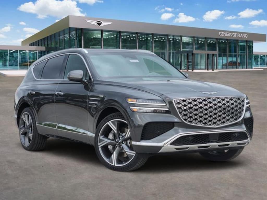 Gray 2026 Genesis GV80 3.5T Prestige 4D Sport Utility 3.5T Prestige AWD 8-Speed Automatic 3.5L DOHC Option Group 01, 18 Speakers, 3rd row seats: split-bench, 4-Wheel Disc Brakes, ABS brakes, Adaptive suspension, Air Conditioning, Alloy wheels, AM/FM radio: SiriusXM, Anti-whiplash front head restraints, Auto High-beam Headlights, Auto tilt-away steering wheel, Auto-dimming door mirrors, Auto-dimming Rear-View mirror, Automatic temperature control, Brake assist, Bumpers: body-color, Compass, Delay-off headlights, Driver door bin, Driver vanity mirror, Dual front impact airbags, Dual front side impact airbags, Electronic Stability Control, Emergency communication system: Genesis Connected Services, Exterior Parking Camera Rear, Four wheel independent suspension, Fragrance Cartridge, Front anti-roll bar, Front Bucket Seats, Front Center Armrest, Front dual zone A/C, Front reading lights, Fully automatic headlights, Garage door transmitter: HomeLink, Genuine wood console insert, Genuine wood dashboard insert, Genuine wood door panel insert, Heads-Up Display, Heated and Ventilated Front Bucket Seats, Heated door mirrors, Heated front seats, Heated rear seats, Heated steering wheel, Illuminated entry, Knee airbag, Leather steering wheel, Low tire pressure warning, Memory seat, Nappa Leather Seating Surfaces, Navigation System, NFC Key Card, Occupant sensing airbag, Outside temperature display, Overhead airbag, Overhead console, Panic alarm, Passenger door bin, Passenger vanity mirror, Power door mirrors, Power driver seat, Power Liftgate, Power moonroof, Power passenger seat, Power steering, Power windows, Radio data system, Radio: AM/FM/HD Bose Premium Sound System, Rain sensing wipers, Rear air conditioning, Rear anti-roll bar, Rear reading lights, Rear seat center armrest, Rear side impact airbag, Rear window defroster, Rear window wiper, Reclining 3rd row seat, Remote keyless entry, Security system, Speed control, Speed-sensing steering, Speed-Sensitive Wipers, Split folding rear seat, Spoiler, Steering wheel memory, Steering wheel mounted audio controls, Tachometer, Telescoping steering wheel, Tilt steering wheel, Traction control, Trip computer, Turn signal indicator mirrors, Variably intermittent wipers, Ventilated front seats, Ventilated rear seats, and Wheels: 22" x 9.5J Dark Gray Matte Alloy.