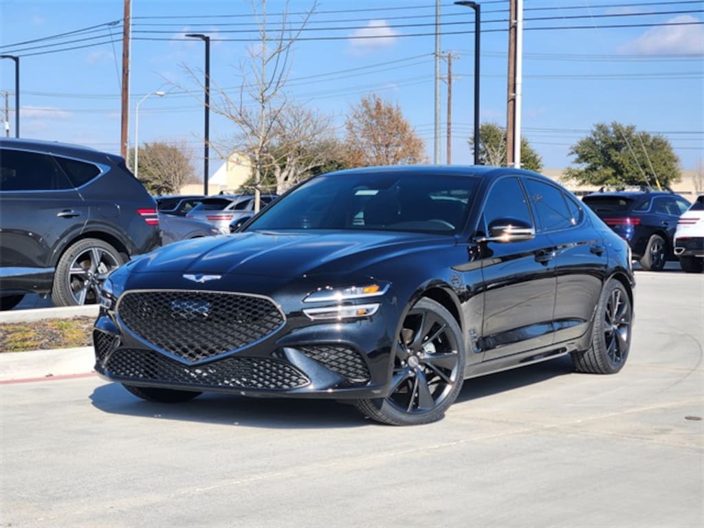 Black 2023 Genesis G70 2.0T RWD 8-Speed Automatic with SHIFTRONIC I4 **REMOTE START**, **RECENT OIL CHANGE**, **REAR BACKUP CAMERA**, **PUSH BUTTON START**, **NAVIGATION**, **LOCAL TRADE**, **LEATHER INTERIOR**, **KEYLESS ENTRY**, **GENESIS FACTORY CERTIFIED AT NO ADDITIONAL CHARGE**, **HEATED STEERING WHEEL**, **HEATED SEATS**, **FRESH DETAIL**, **CLEAN CARFAX**, **CARFAX ONE OWNER**, **BLUETOOTH WIRELESS PHONE CONNECTIVITY**.